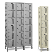 No matter the size of your facility, whether you serve a small client base or an entire school of athletes, we have the best gym lockers for sale. We start with our ventilated style which features 16-gauge steel for the frames and doors and 24-gauge steel for the sides, tops, bottoms and shelf. Each door has rectangular perforations which provide plenty of airflow throughout the unit which helps prevent the buildup of unpleasant odors, mold and mildew. Available in single tier, double tier, and box locker styles.