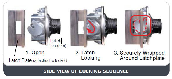 Our highly recommended Built-In Combination Wrap Around Locker Lock (Master Lock #1690) is great for providing the highest level of security and the greatest ease of use of any locker lock. The wrap around technology is the same that is used in the automotive industry: a rotational operating deadbolt latch locks by wrapping around a stationary latch plate or post. Wrap around locks secure lockers and prevent left easily. The lock is designed to tolerate locker misalignment, which makes installation easier and much less likely to need adjustment over the life of the lock. Master key not included.