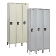 These lockers are built using strong 16-gauge steel and are reinforced with welded channel frames. The durable construction of these compartments makes them ideal for storing coats, backpacks, and instruments in school settings. Featuring a flush door design, piano hinges, and a single point latching recessed handle, these lockers are efficient and have no moving parts. This allows them to be some of the toughest and most reliable lockers on the market.