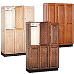 Along with our laminate lockers, we also carry wood veneer styles, available in single tier or double tier styles. Instead of a laminate, this style utilizes industrial-grade core for the frame. The door is made from the same but given a ¾” thick veneer with raised panels to offer a sleek, refined look. The veneer is offered in natural, light, medium, or dark Oak finishes to make sure they enhance any room you put them into. The frame features 2mm edgebanding to help protect the locker, and the hinges are heavy-duty steel European hinges that are concealed to offer a seamless edge. This not only adds to the overall appearance of the locker but offers more protection against vandals than standard hinges do. These tend to be a great fit at country clubs, lodges, concert halls, and executive offices. These are the perfect compromise between the laminate lockers and the solid wood lockers.