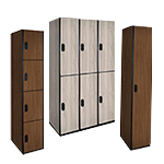 For a cost-effective option with a faster turnaround time that offers availability in single, double, and four-tier styles, wood laminate lockers might be the perfect option for you. For schools looking for storage with a scratch-resistant surface, the melamine laminated lockers offer a sturdy locker that can take the heavy traffic of students using them every day. On top of the scratch resistance, these are also fire and moisture resistant, a very valuable trait for both schools and offices. If someone happens to spill something, not a problem! These are easily cleaned with some mild cleaner and a rag. The laminate allows for quick and easy cleanup as well as low maintenance over time. We've also found these wooden lockers to be very popular in gyms and fitness centers, in addition to their superior durability in the locker room, some facilities prefer wood gym lockers for their stylish and modern appearance. Essentially you get a look that's similar to real wood but without the higher price tag and maintenance requirements. The wood grain laminate is only on the door, so be prepared to buy sides separately for the end of your row of lockers.